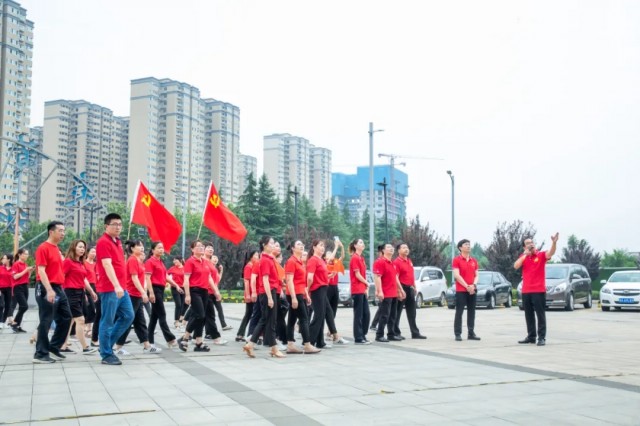 觀摩交流會結束后,參加活動的全體黨員齊聚炎黃科技園親水平臺,參加洛龍高新區“歌聲嘹亮 禮贊山河 政企聯唱 齊頌百年”獻禮建黨百年華誕主題活動合拍視頻的錄制。