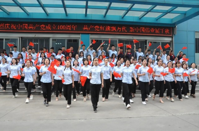 大家激動地揮舞著國旗,放聲高唱《沒有***黨就沒有新中國》,表達自己對黨和祖國的熱愛,用歌聲向黨和祖國真情告白。
